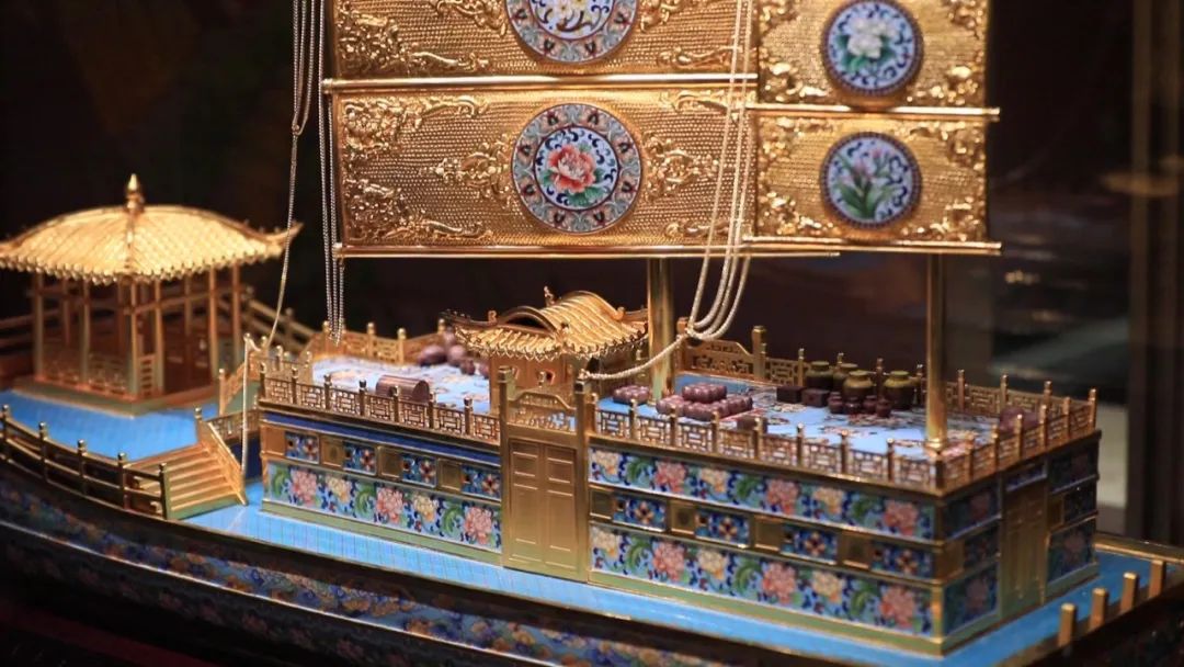 北京,不僅是六朝古都,更是大運河的集聚地,被譽為運河上飄來的城市。糖葫蘆、京劇戲臺、兔爺?shù)鹊?,京味十足又各具特色。館內(nèi)展示的景泰藍作品《船承大運》,更是再現(xiàn)了運河的繁榮景象,大氣磅礴又不乏巧思。